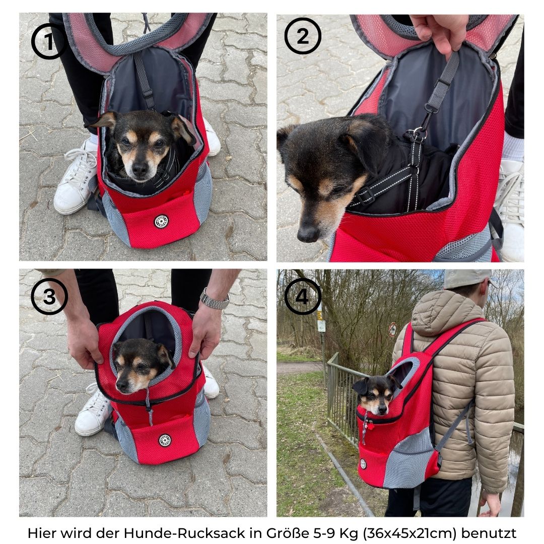 Wir haben den Hunde-Rucksack über Monate hinweg mit unserer Hündin Luna entwickelt. Dabei haben wir darauf geachtet, dass es so bequem wie möglich für den Hund ist und trotzdem alle Funktionen eines normalen Rucksacks erfüllt werden.